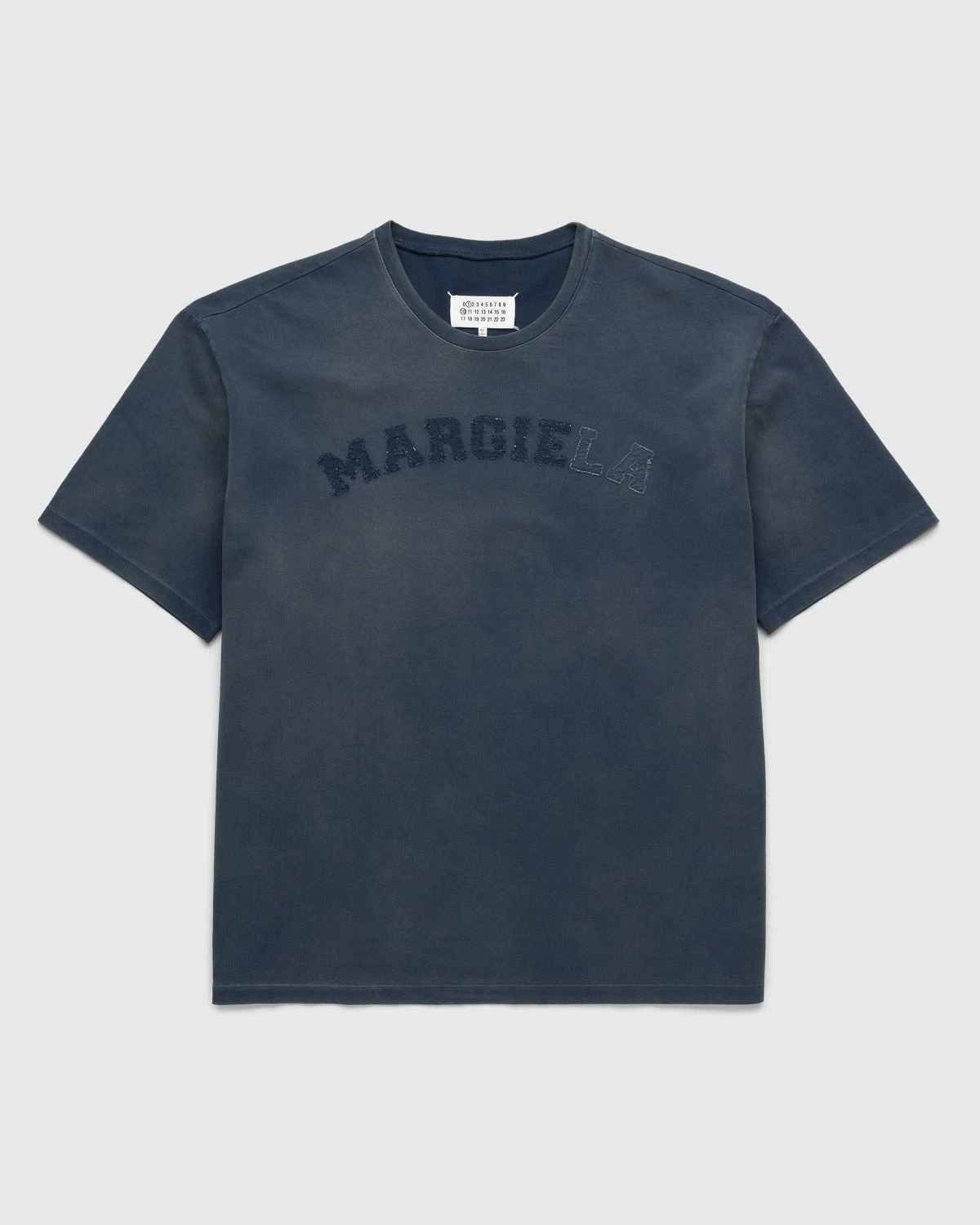 100% cotton. Ribbed crew neck. Memory of Margiela logo with appliquΓ©d LA lettering at the chest. Four stitches detail at the back.