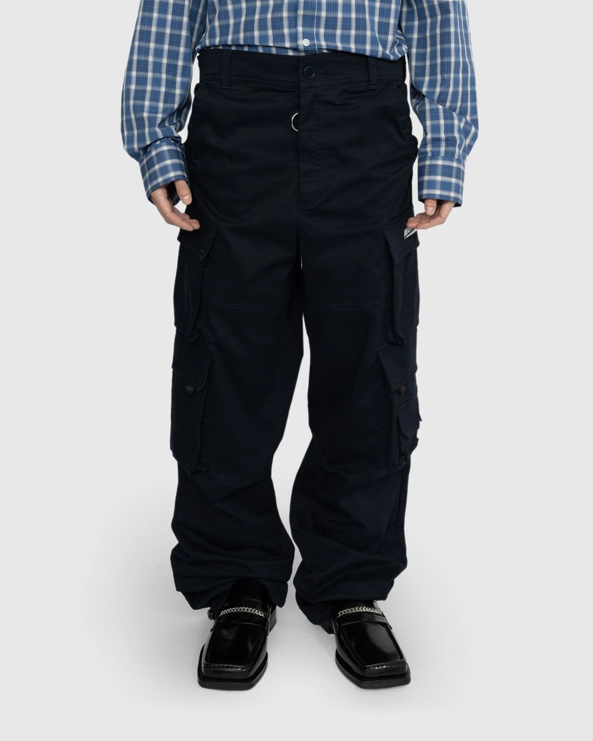 Martine Rose updates the Pulled Cargo Trouser for the new season with a tightened crotch area that creates a pulled effect around the zip. Designed for a loose fit, the pair is predominantly constructed from cotton and outfitted with a slew of pockets including four cargo pockets. Drawstrings are incorporated at the ankles to allow for minor adjustments to styling, as the pant is finished with seasonal branded tabs and logo detailing at the left leg.
