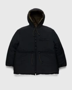 Our Legacyβs Vintrospec Parka is a fully reversible design crafted from an Italian technical cotton, polyester, and nylon blend fabric, with a water-repellent coating that helps protect against the elements. The oversized outerwear style is padded with synthetic insulation for increased warmth and comfort, featuring a drawstring hood, waist, and hem for minor adjustments to styling.