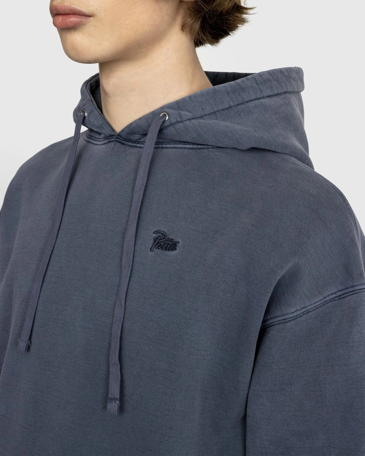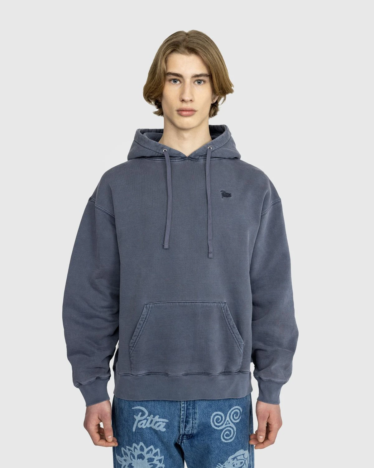 100% cotton. 410 gsm soft brushed cotton. Pigment-dyed for a washed look. Drawstring hood. Front pouch pocket. Ribbed cuffs and hem. Patta script logo embroidery at the left chest.