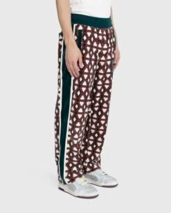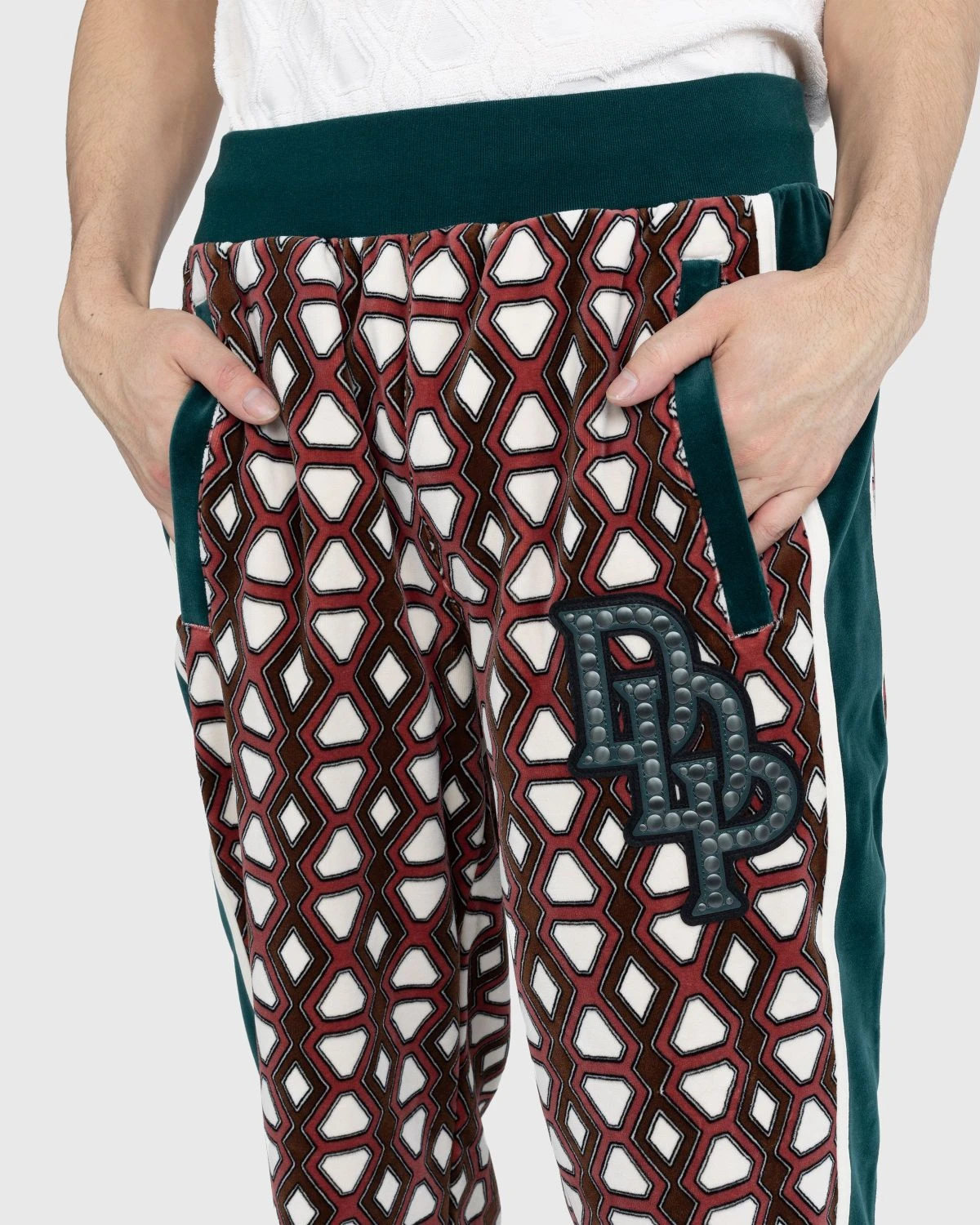 Dapper Dan draws inspiration from his Harlem roots for his second collaboration with Puma, while simultaneously pulling from the idea of a pre-game runway. Delivering a luxury upcycled aesthetic, the designer puts a distinctive spin on the classic T7 tracksuit, showcasing a captivating all-over pattern. The pants are branded with a collaborative logo patch on the left leg, as striped detailing and green trim provide a premium touch.