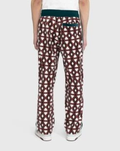 66% cotton. 34% polyester. All-over pattern. Striped detail. Ribbed elasticated waist with an interior drawcord. Collaborative logo patch at the left leg. Zip hand pockets. Single back pocket.