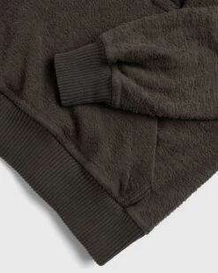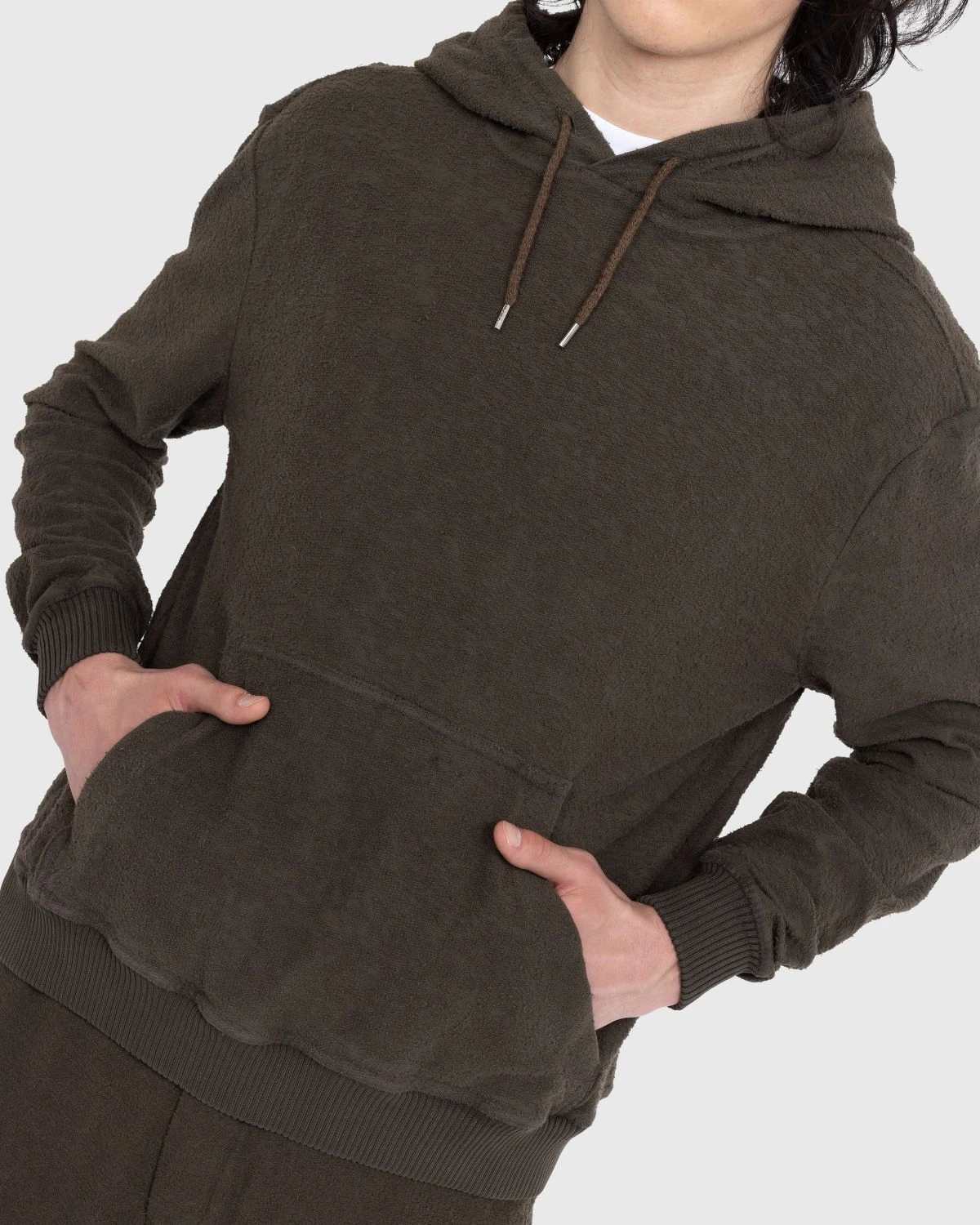 The Yfir is a monochromatic hoodie style by RANRA, offered in a neutral brown colorway for the season. It is crafted from 100% cotton and features traditional design elements including an adjustable drawstring hood, rib knit trims at the cuffs, and hem, and a front pouch pocket.