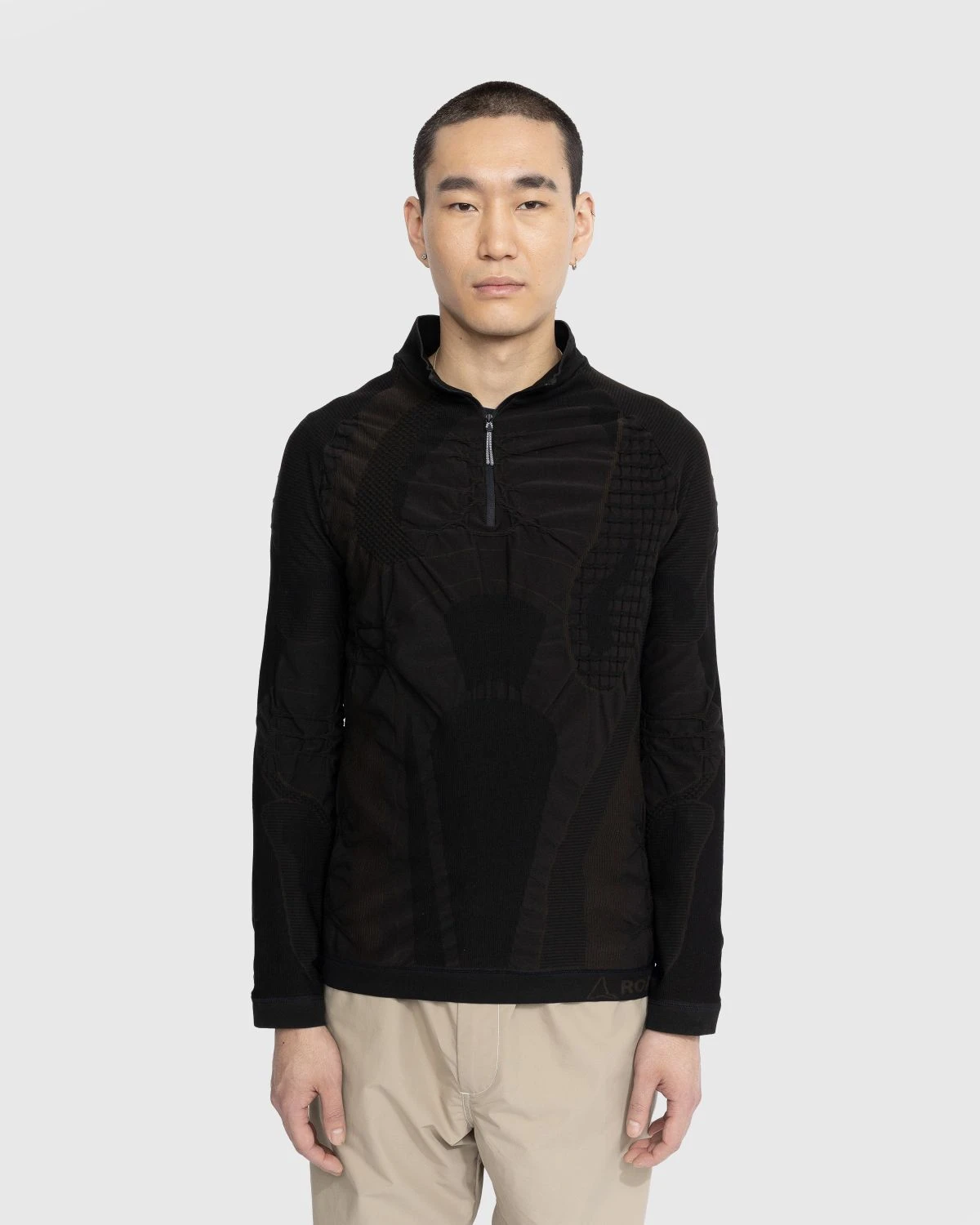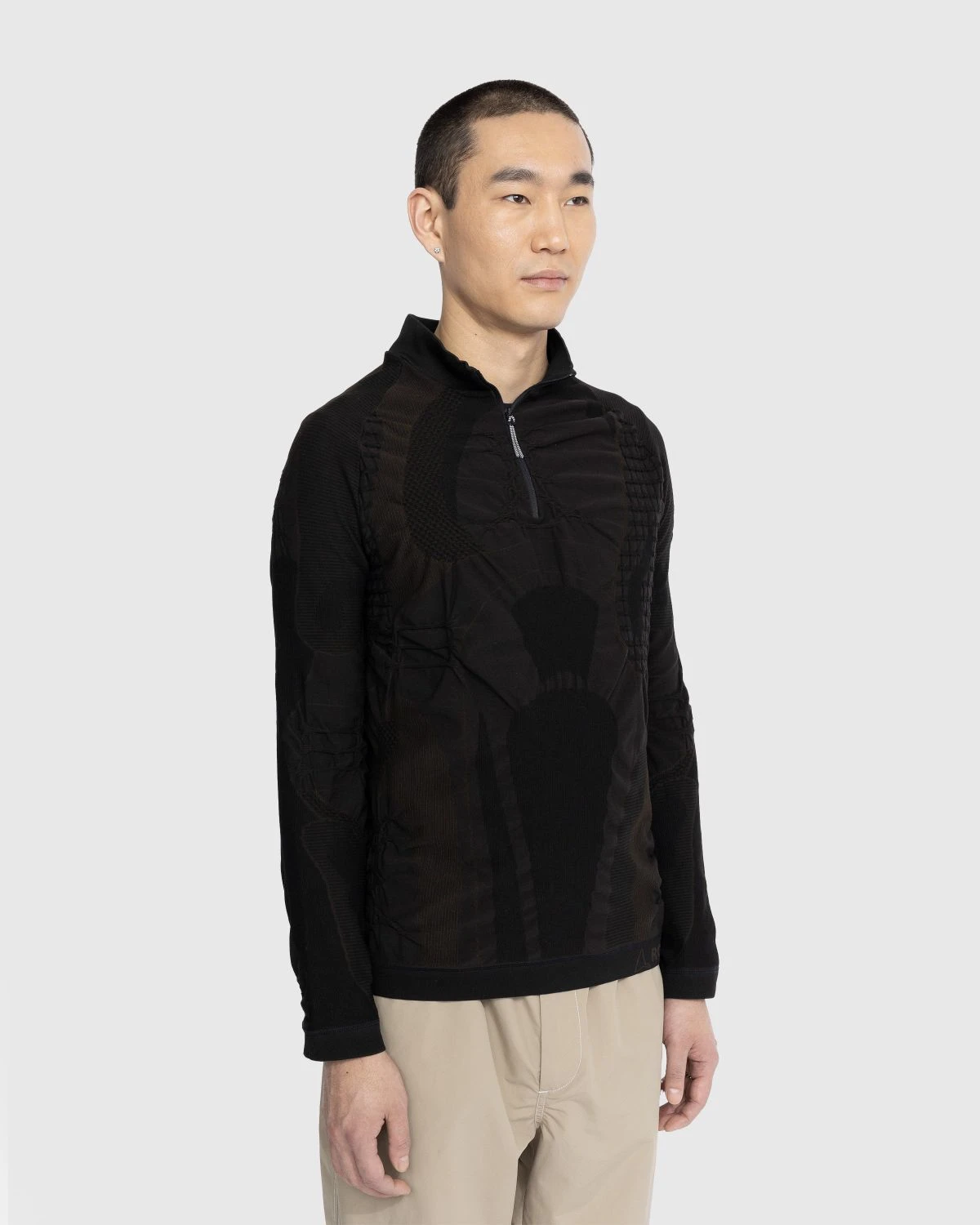 Crafted from a lightweight nylon blend, the Half Zip 3D Knit is designed for use as a technical layer or on its own. Contrasting knit panels are executed in insulating and breathable Dryarn fibers, as the garment features raglan sleeves for increased comfort. The regular-fitting top is detailed with a half-length zip at the high collar.