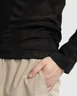 50% polypropylene. 50% nylon. Light insulating and breathable Dryarn fibers. Technical knit for layering. High collar. Half-length zip at the front. Raglan sleeves.