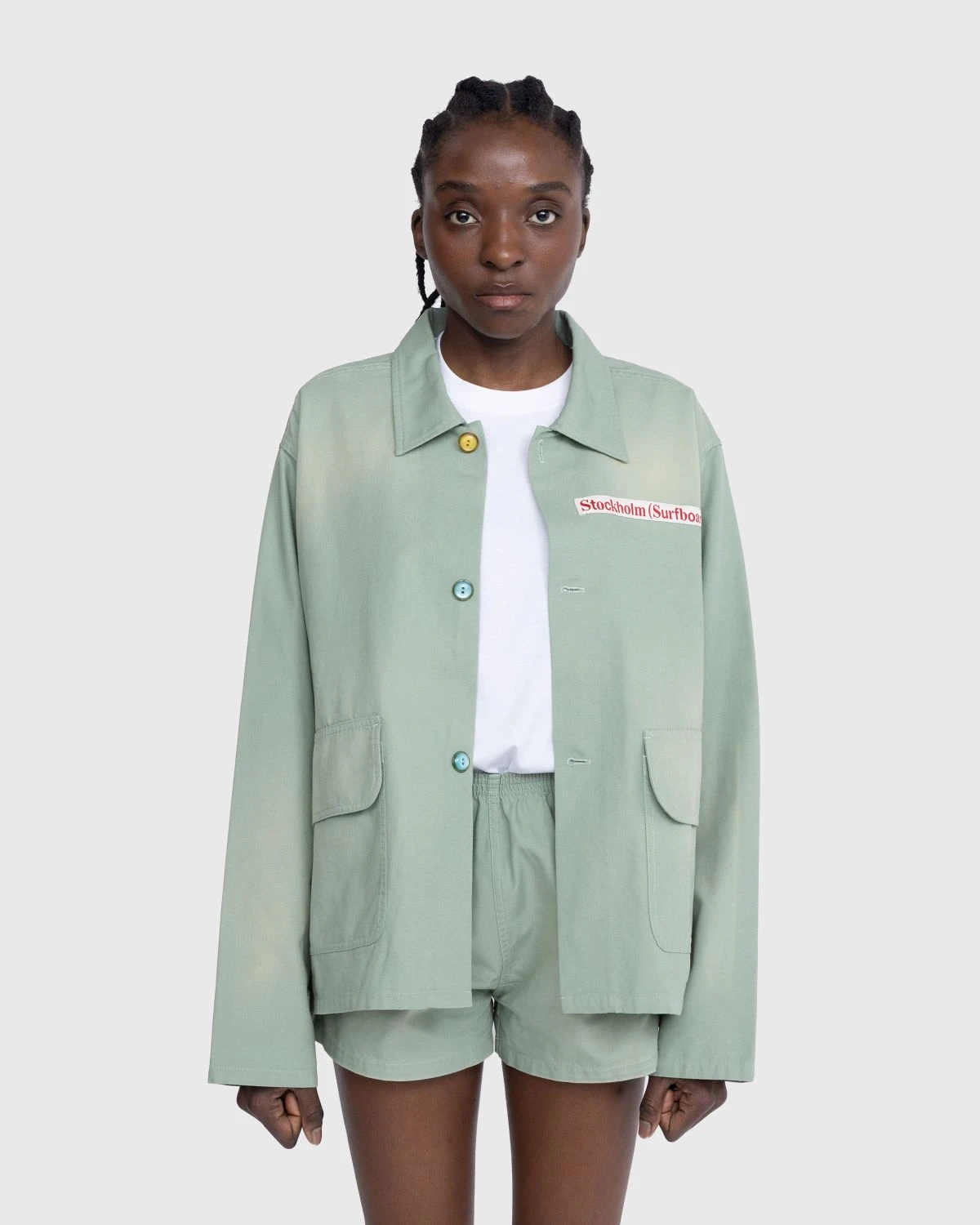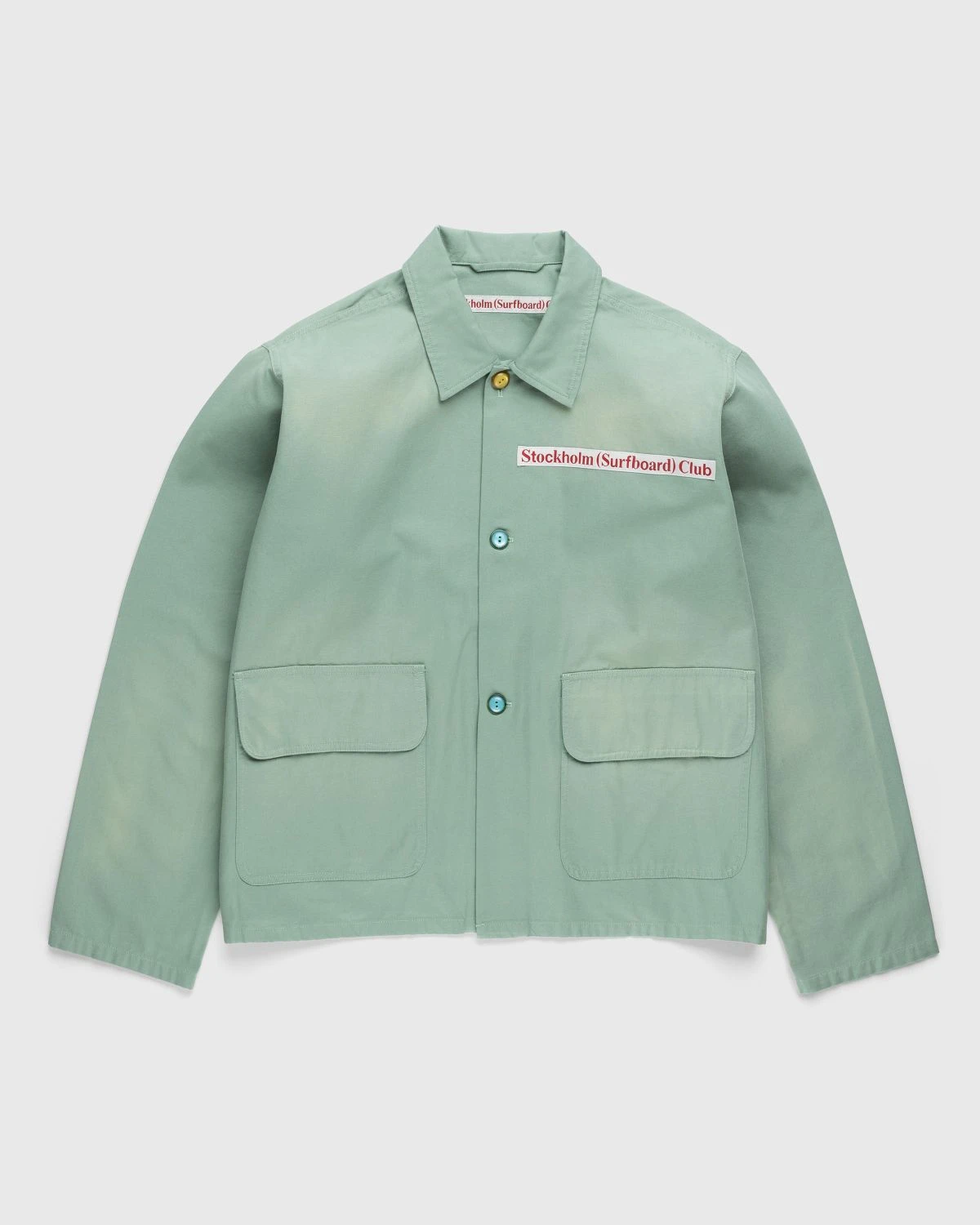 Stockholm Surfboard Club updates the classic coach jacket, executing the staple outerwear item in lightweight cotton canvas. It arrives in a neutral sage colorway with bright contrasting buttons lined down the center. Large flap pockets are incorporated onto the front, as the style is finished with a woven logo label at the chest.