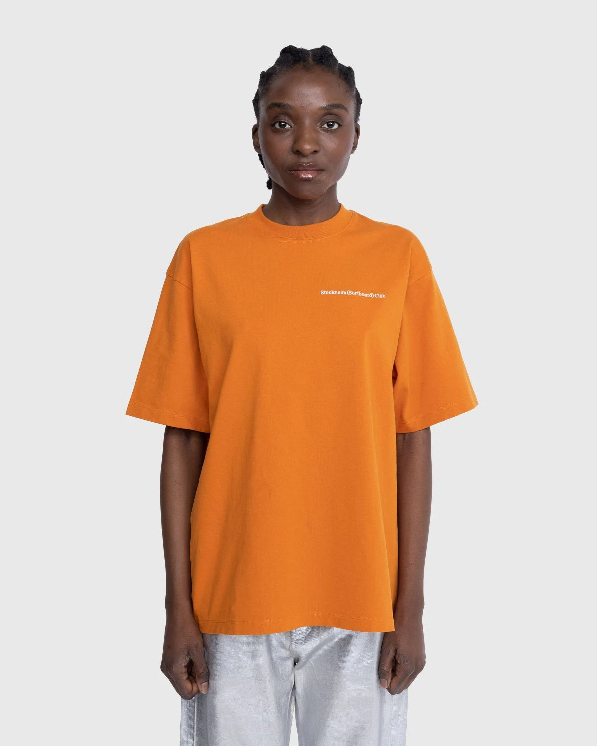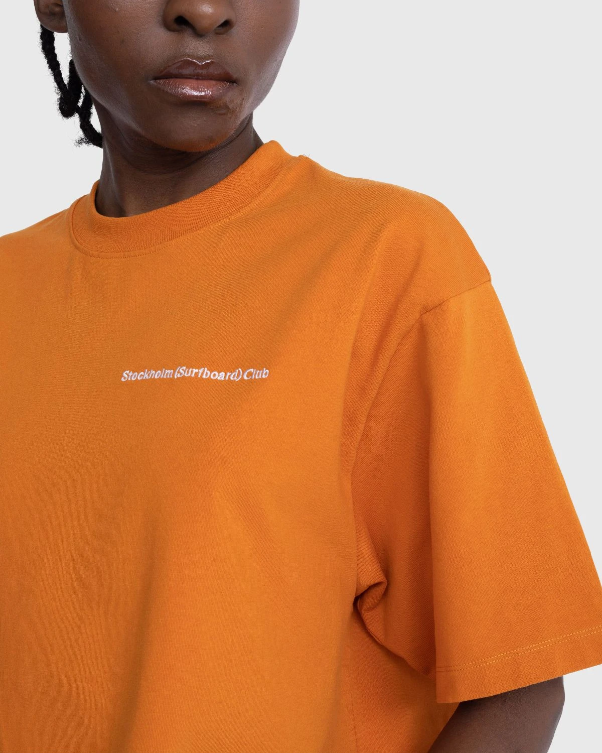 This short-sleeve t-shirt is a staple Stockholm Surfboard Club style, minimally branded with an embroidered logo at the chest. Arriving in a bright orange colorway, the boxy garment is crafted from heavyweight cotton jersey that is washed to give it a subtle, pre-worn look.