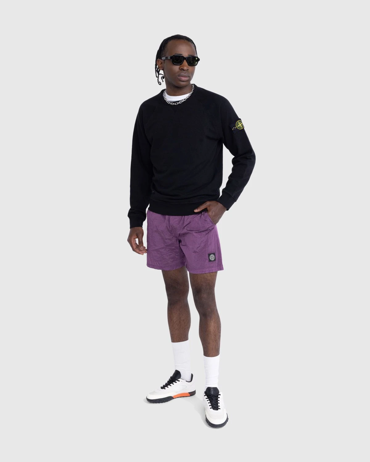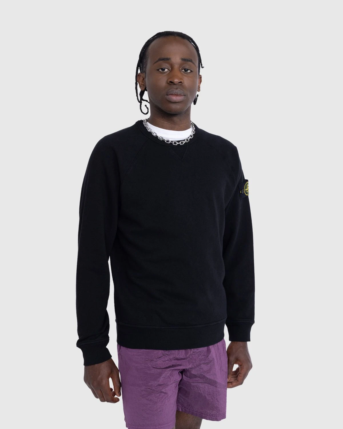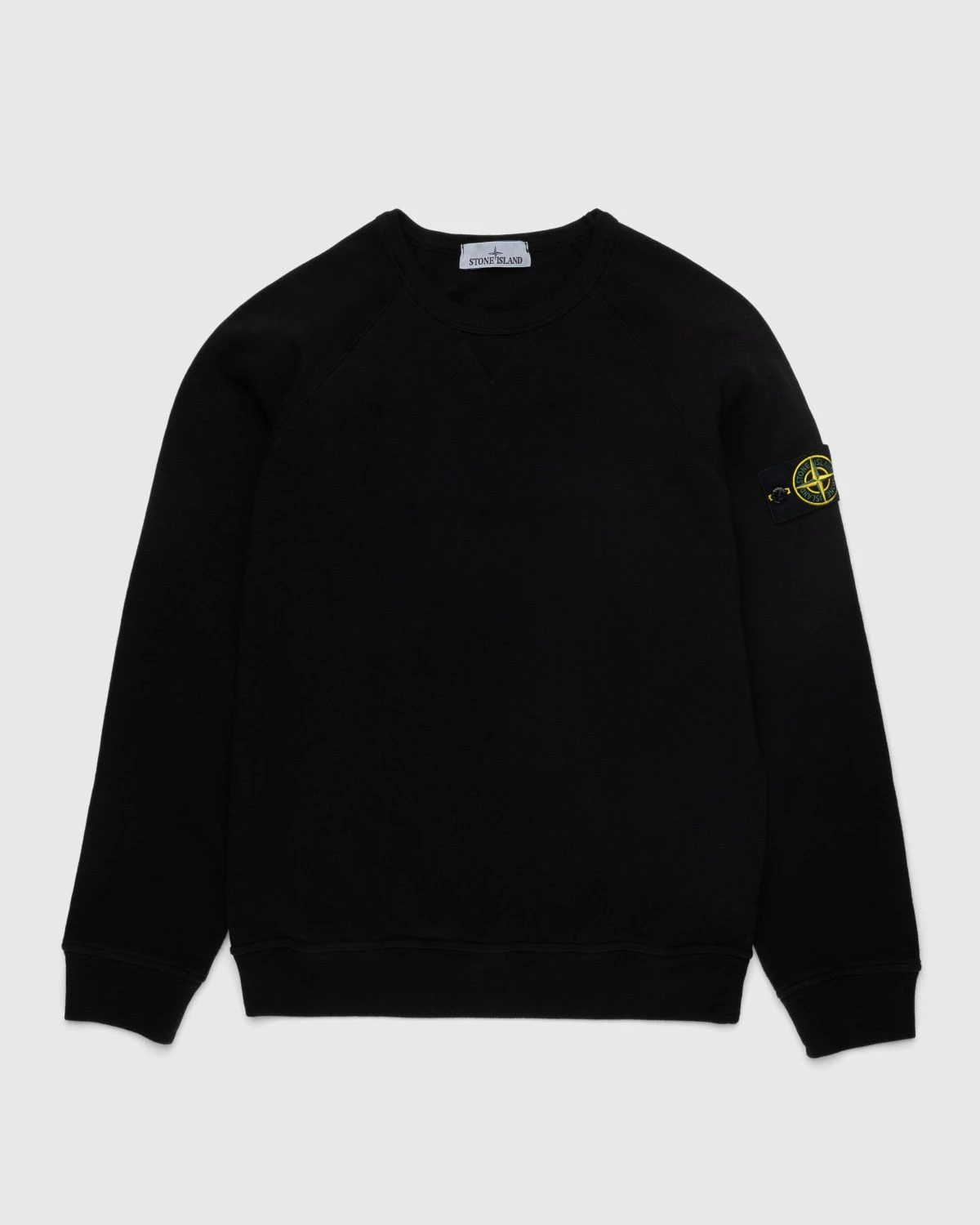 100% Cotton. Crewneck sweater. Garment-dyed. Ribbed neckline, with small triangular ribbed inlay. Raglan sleeves. Ribbed cuffs and bottom band. Stone Island badge on the left sleeve.