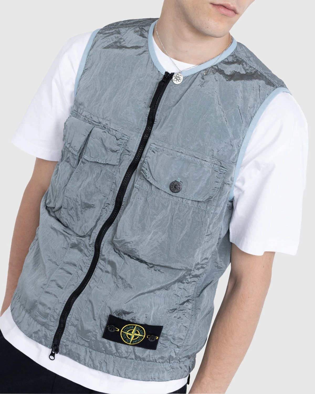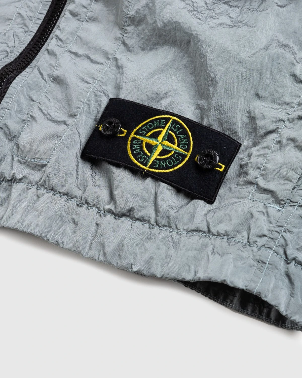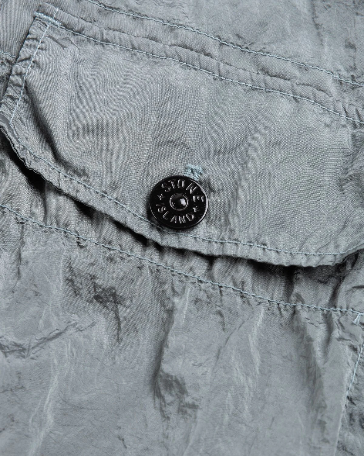 External fabric: 100% Polyamide. Lining: 100% Polyester. Garment-dyed. Neckline and armholes edged in elasticized nylon tape. Two chest pockets: bellows pocket on the right side divided in two sections, each one with flap and hidden snap fastening, regular bellows pocket with flap, and button fastening on the left. In-seam hand pockets with hidden snap fastenings. Two-way zipper fastening, inner elasticized tape appliqués on sides. The lower left front features the Stone Island badge.