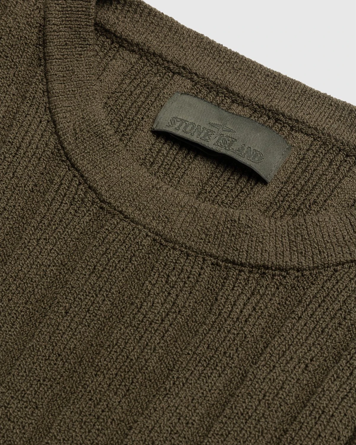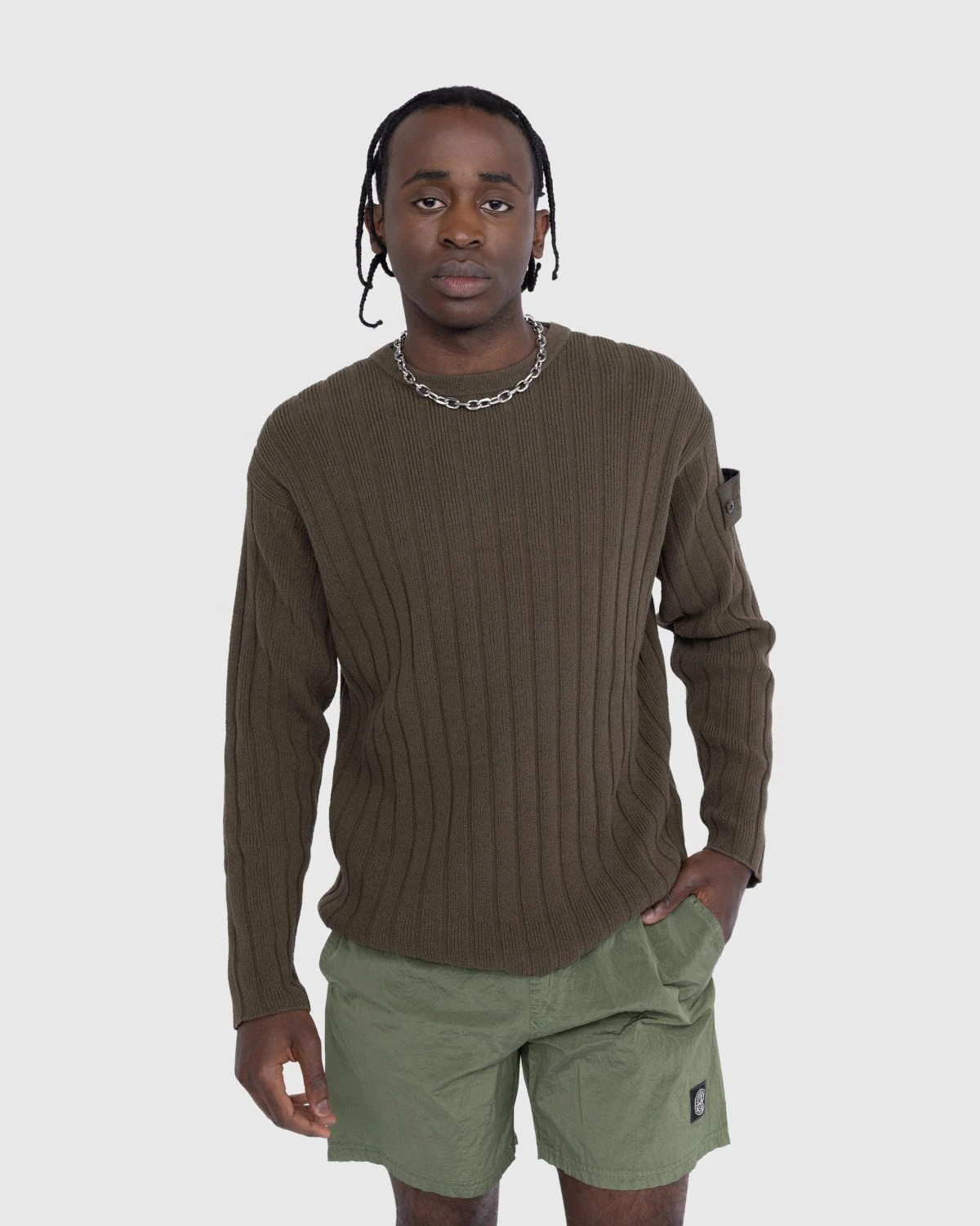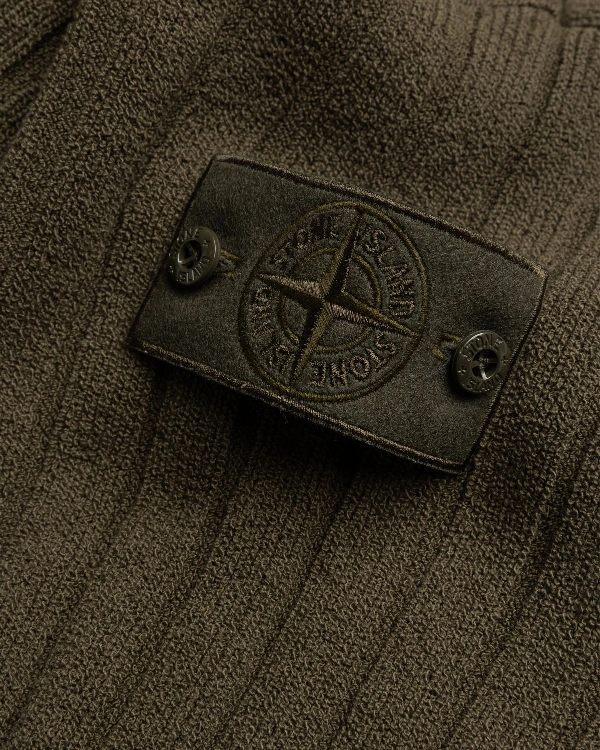 75% Cotton, 25% Polyamide. Crewneck knit in a cotton frisé yarn. Flat ribbing. 5 gauge. Finely ribbed neckline. Straight cuffs and bottom. Stone Island badge on the left sleeve.