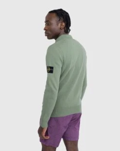 100% Cotton. 7 gauge. Stocking stitch. Hidden zipper neck fastening.Ribbed cuffs and bottom band. Stone Island badge on the left sleeve.