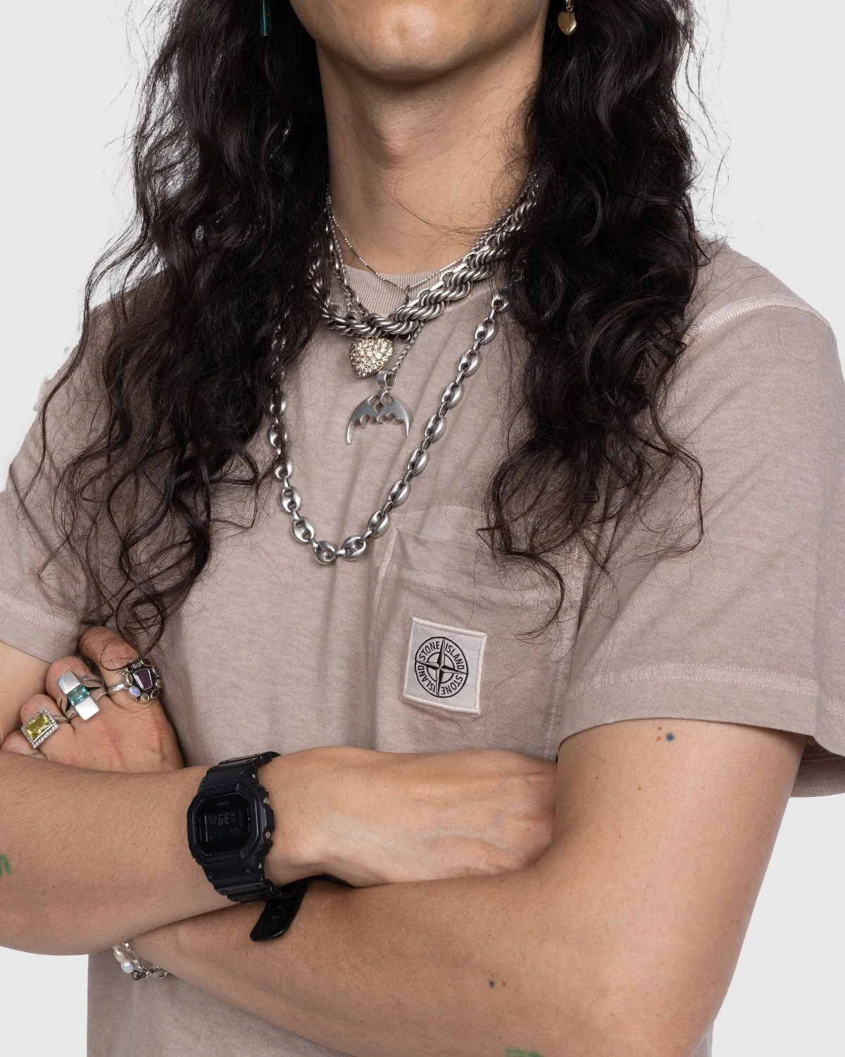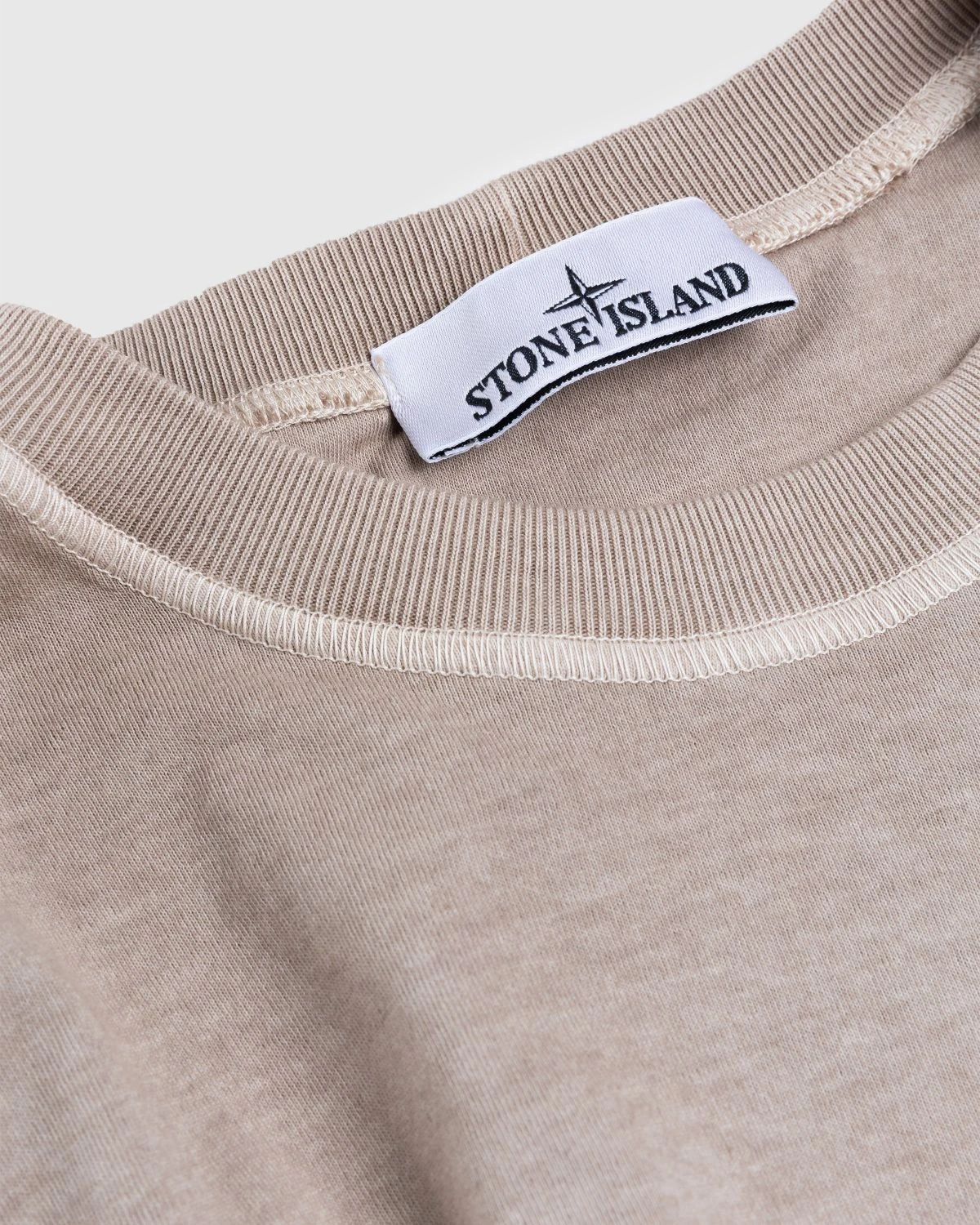 Stone Island continues its material research with its SS23 collection. Crafted from organic cotton, the garment-dyed t-shirt is treated with a ‘FISSATO’ effect that creates a three-dimensional appearance. The t-shirt is finished with contrasting overlock seams and Stone Island badge on the chest.