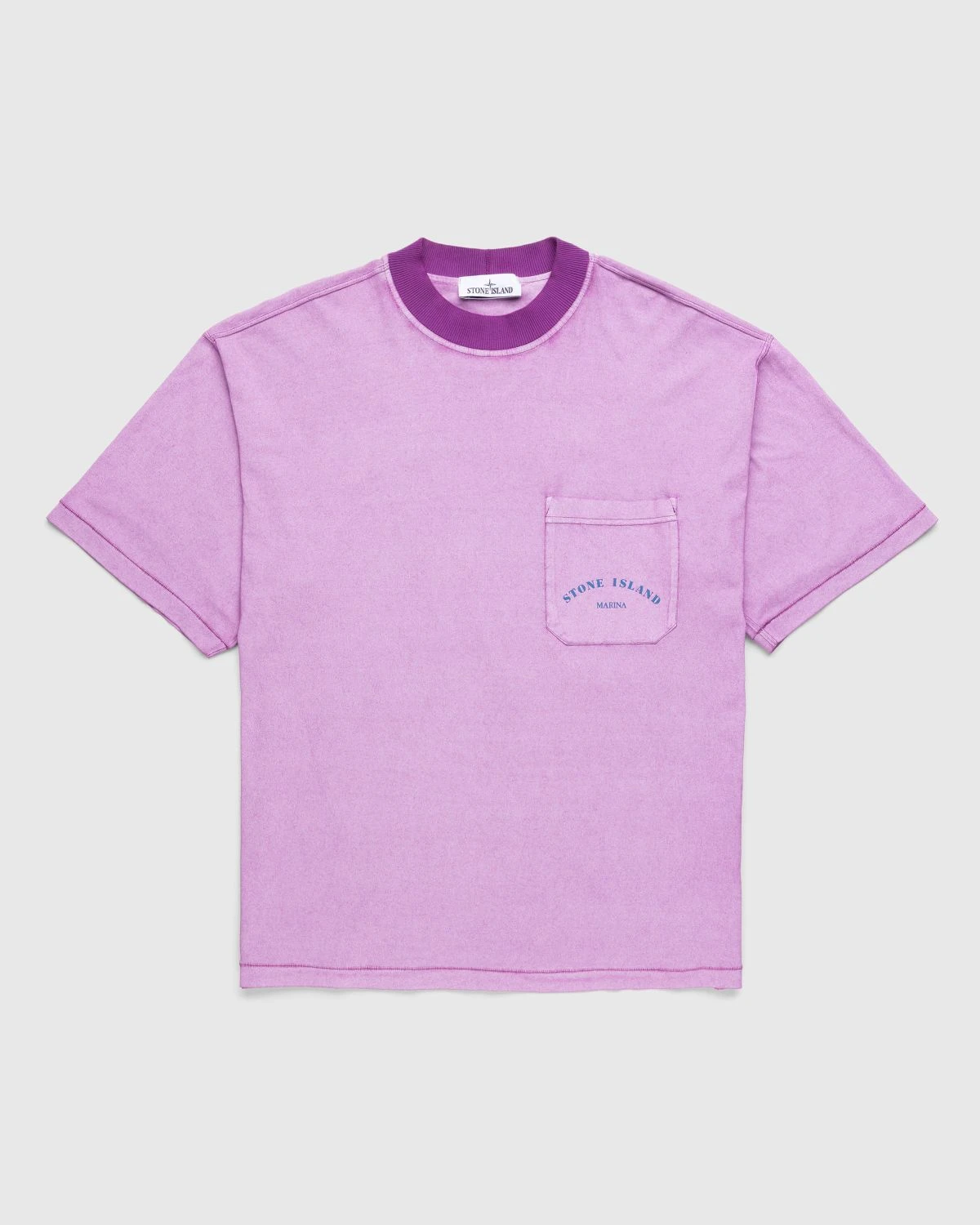 A must have for fans of the innovative Italian brand, the Marina t-shirt is one of many offerings from Stone Islandβs latest collection. Crafted from a light cotton jersey using the brandβs garment-dyeing process, this tee features a ribbed neckline and a single chest pocket with reflective branding.