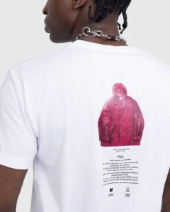 100% Cotton. Ribbed neckline, inside tape with parallel stripes. ARCHIVIO embroidery on chest. On the back, photo of the PVC jacket from the SPRING_SUMMER ’998 collection.