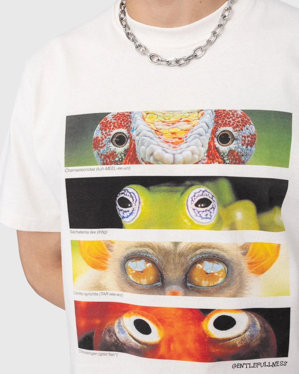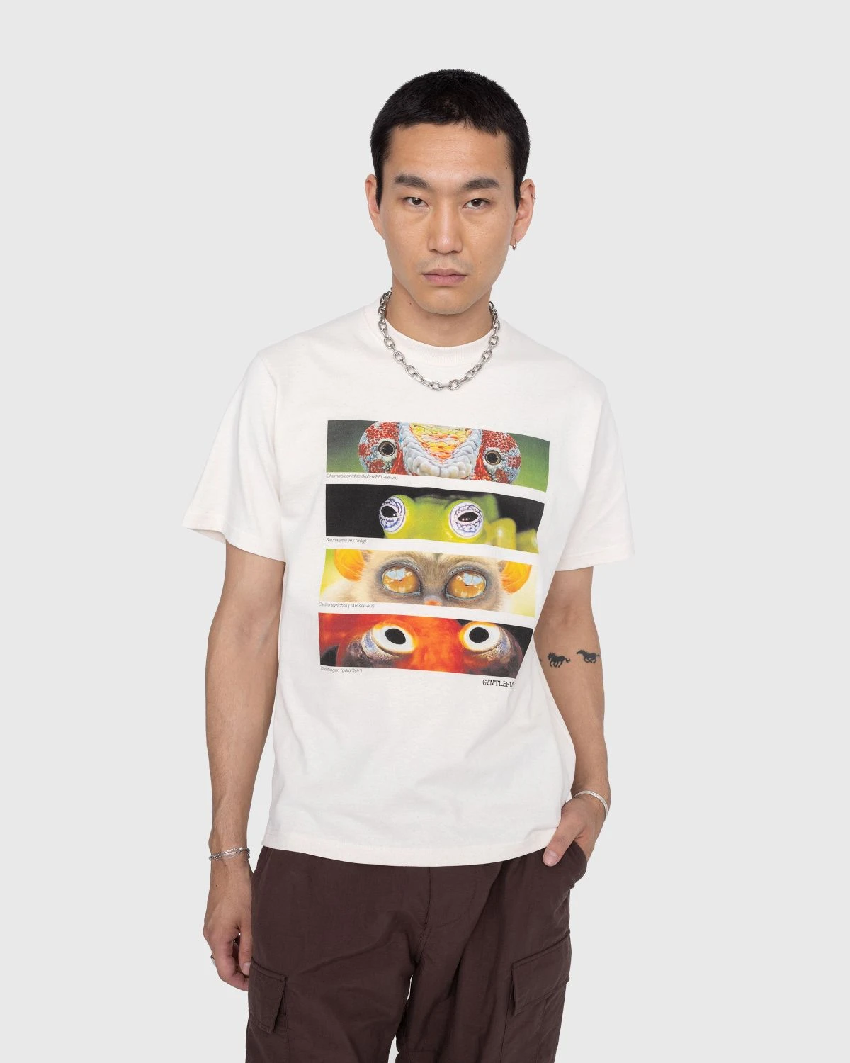 The Animal Eyes Tee is made exclusively for Story mfg.’s seasonal Gentle Fullness collection. Constructed from 60% recycled cotton and 40% organic cotton, the short-sleeve top is eco-dyed, decorated with a multicolored print of animal eyes on the front of the silhouette. The shirt is detailed with a traditional rib knit crew neck and features a relaxed, boxy fit.