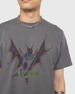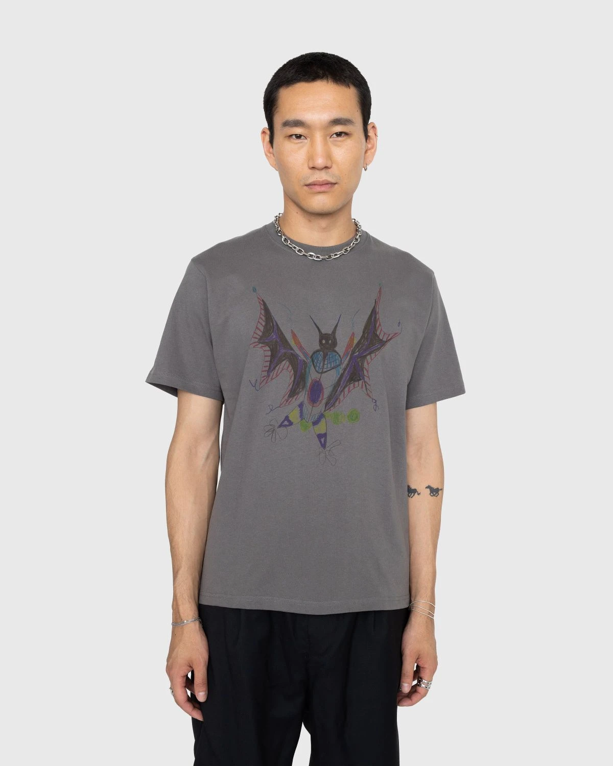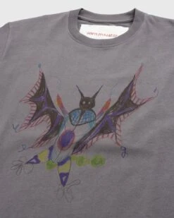 The Bat Tee is made exclusively for Story mfg.’s seasonal Gentle Fullness collection. Constructed from 60% recycled cotton and 40% organic cotton, the short-sleeve top is eco-dyed, decorated with a playful multicolored print by artist Isabel Kang on the front of the silhouette. The shirt is detailed with a traditional rib knit crew neck and features a relaxed, boxy fit.