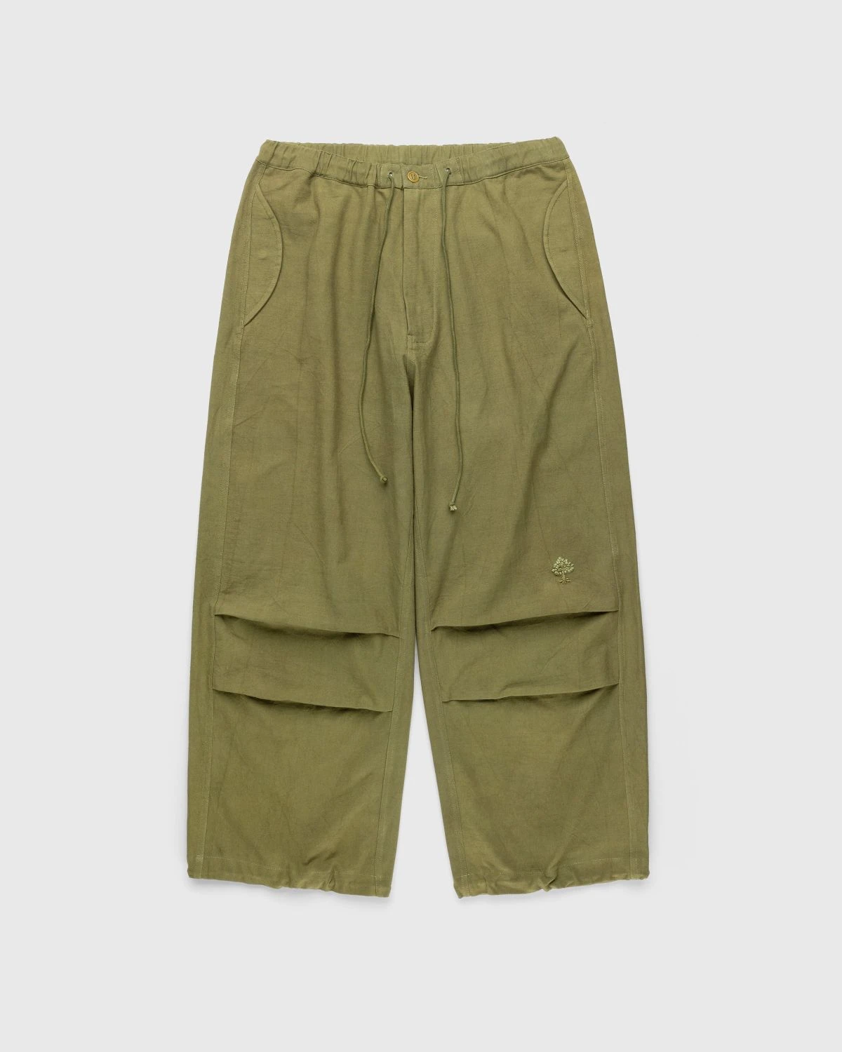 100% organic cotton. Hand embroidered. Naturally hand dyed with kaduka and iron. Zip fly. Drawstring waist and hem.
