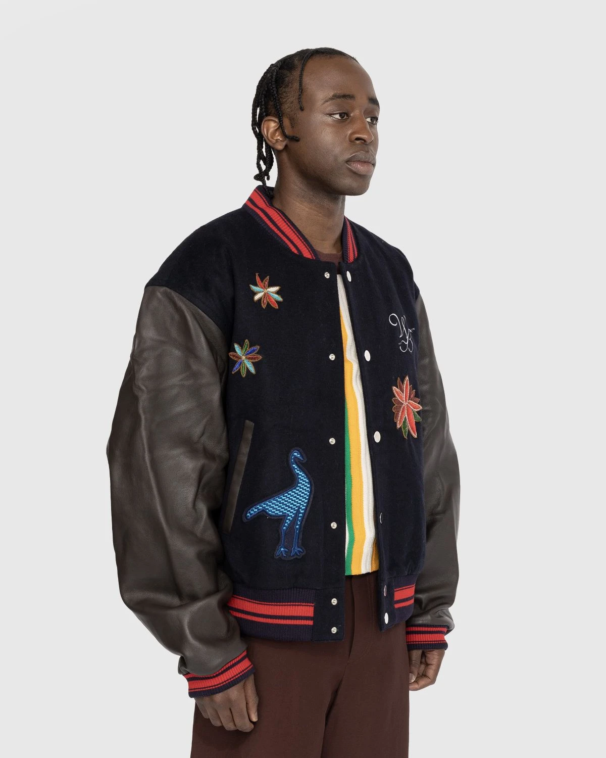 The Ascend is an elevated take on the classic varsity jacket, featuring a wool blend body and supple leather sleeves. The style is cut in a relaxed, boxy fit and detailed with snap button closure, contrasting rib knit trims at the collar, cuffs, and hem, and side hand pockets. Patches are incorporated onto the front to define the design.