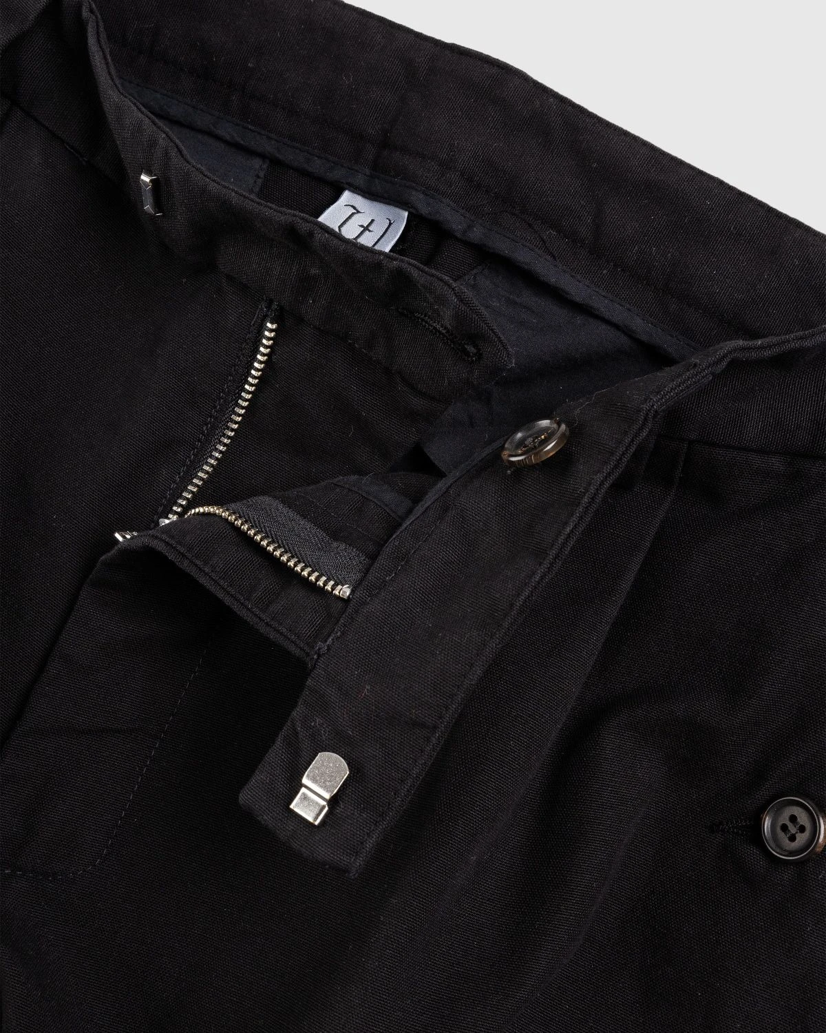 The Bottom Closure Trouser is a cotton canvas pant style from Winnieβs latest seasonal collection. It arrives in a versatile black colorway for effortless matching, detailed with a pleated front and button tabs at the ankles cuffs. Concealed fastening creates a more streamlined look, as the pair is outfitted with button side pockets as well as two back pockets.