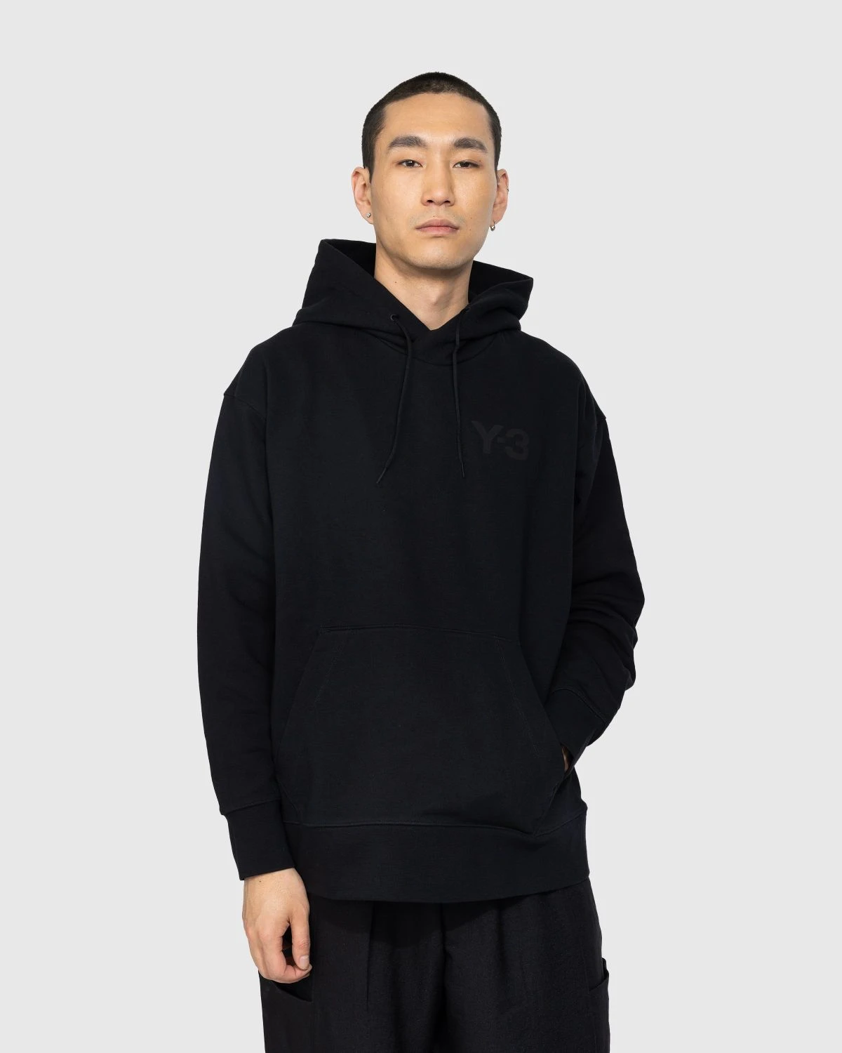 A staple Y-3 style, this stealthy all-black hoodie is crafted from a soft French terry jersey cotton and cut in a relaxed fit for an extra comfortable wear. It features traditional design elements including an adjustable drawstring hood, front pouch pocket, and rib knit trims at the cuffs and hem. A tonal Y-3 logo is applied to the chest to subtly brand the garment.