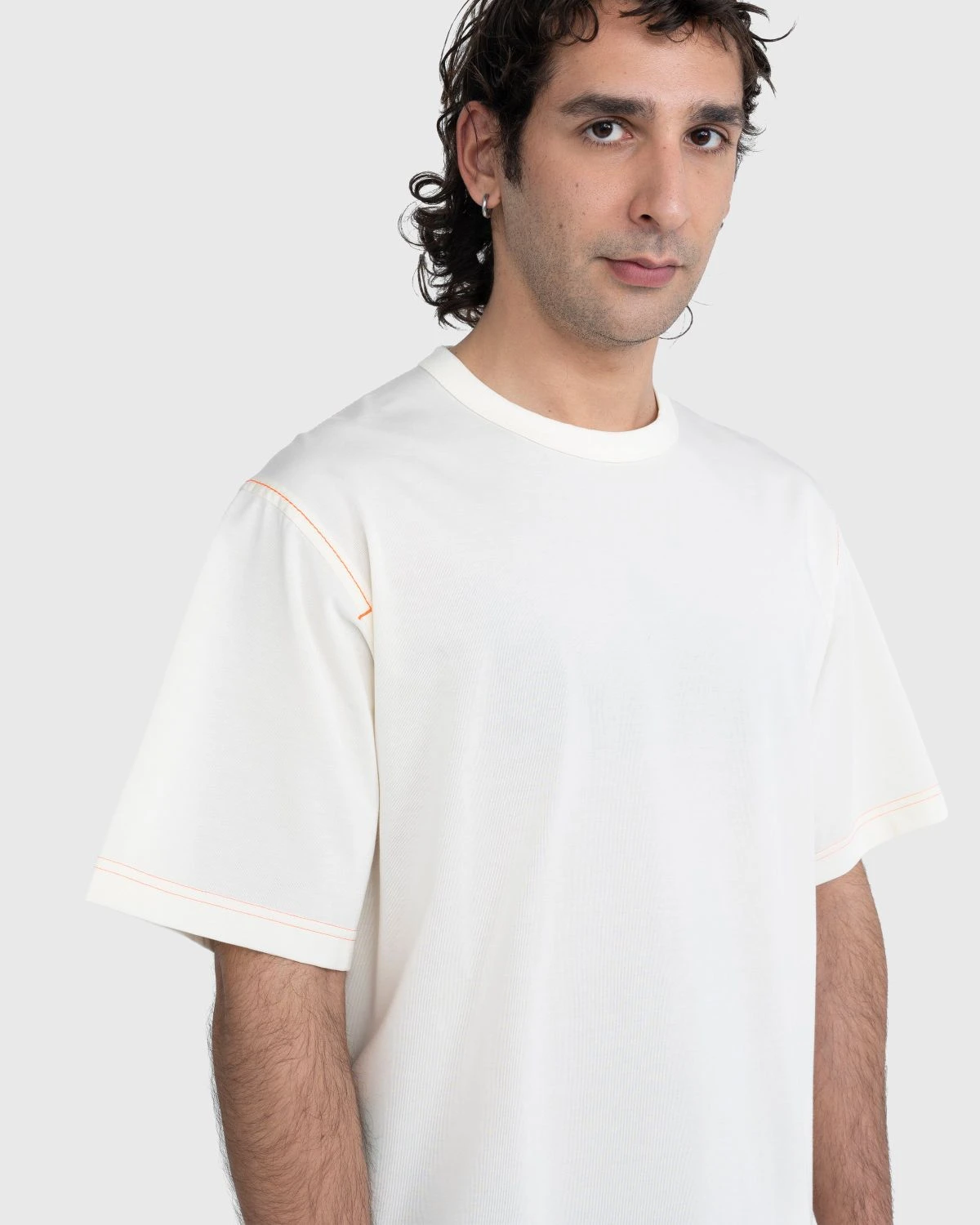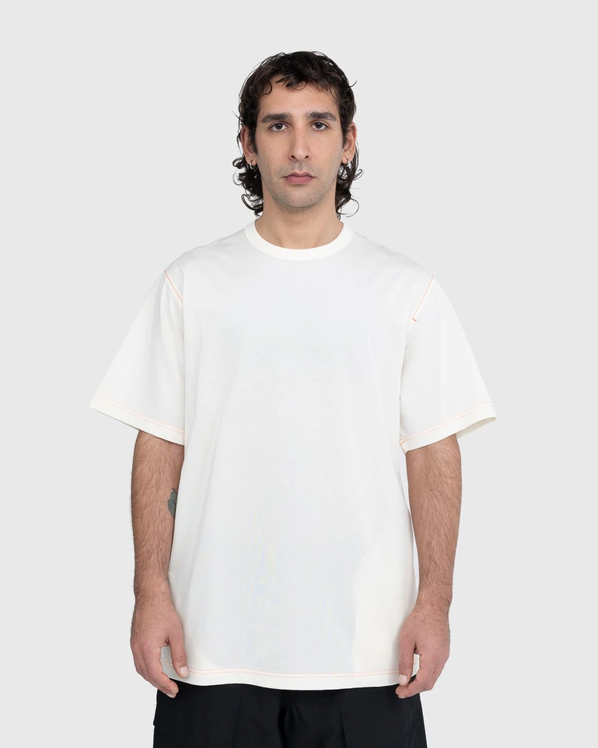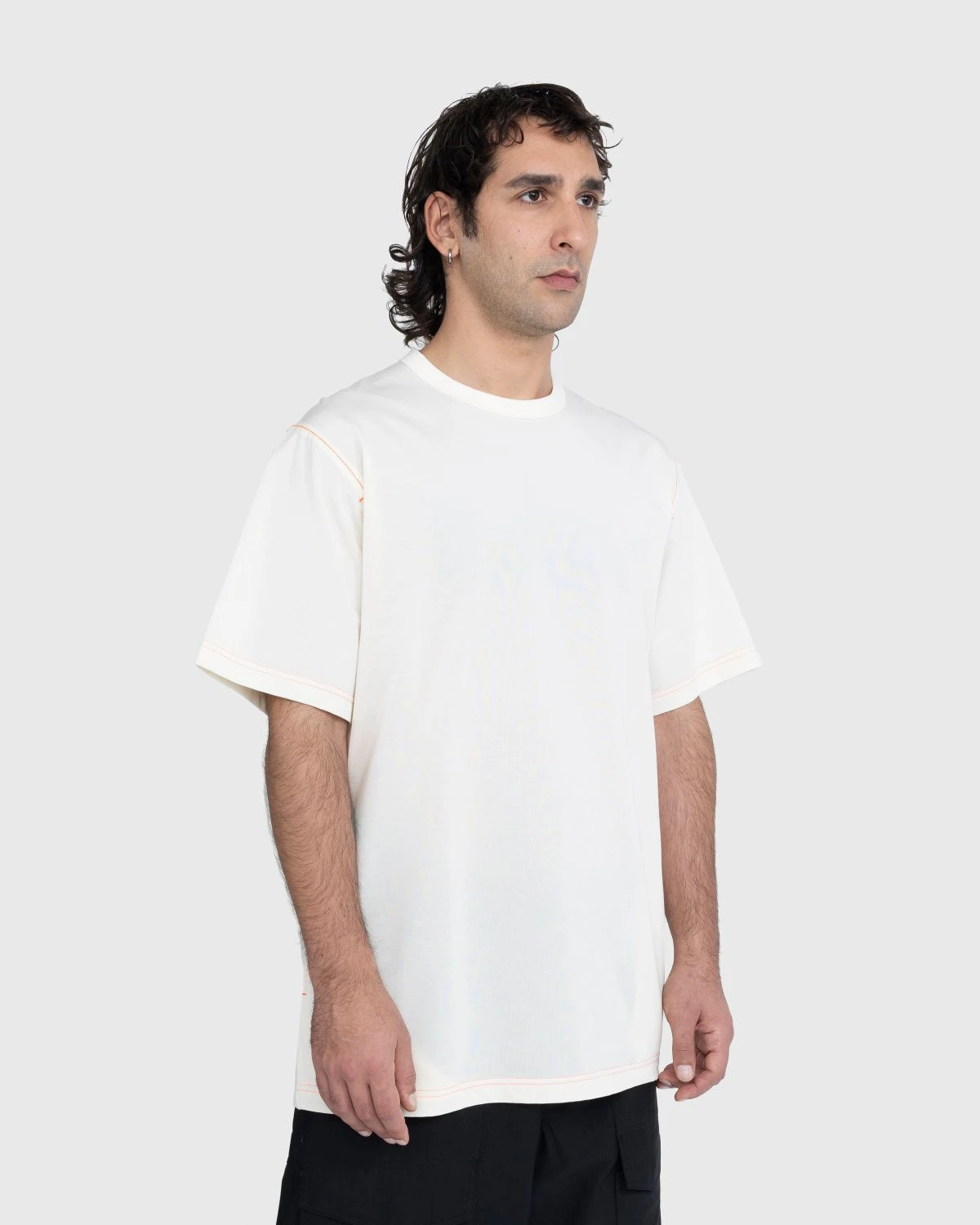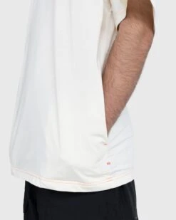 Yohji Yamamoto has used his Y-3 label, made together with adidas, as his playground for finding the sweet spot between fashion and sportswear for over 20 years. On this casual t-shirt, the collaborative line uses an oversized fit for optimum comfort while pockets at either side provide carrying space. Offered in an off-white color, the t-shirt is accented through contrast orange stitching throughout and orange Y-3 branding below the left pocket.